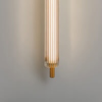 Lavorato a mano, il vetro appare addolcito da sottili righe scanalate.