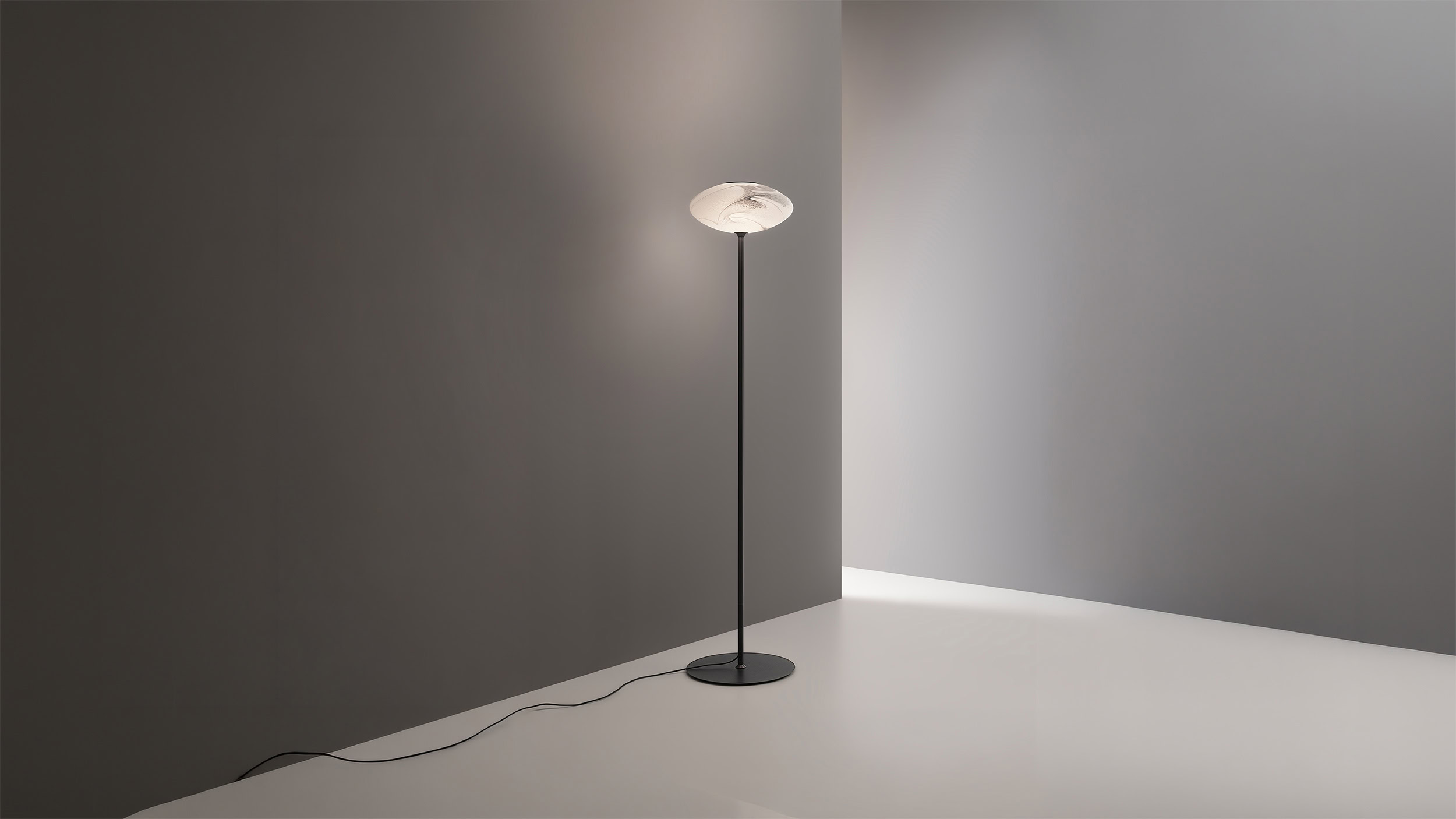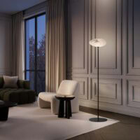 Grazie all'emissione verso l'alto della luce, la luminosità si diffonde uniformemente nell'ambiente senza mai colpire direttamente lo sguardo, garantendo quindi un ottimo comfort visivo.