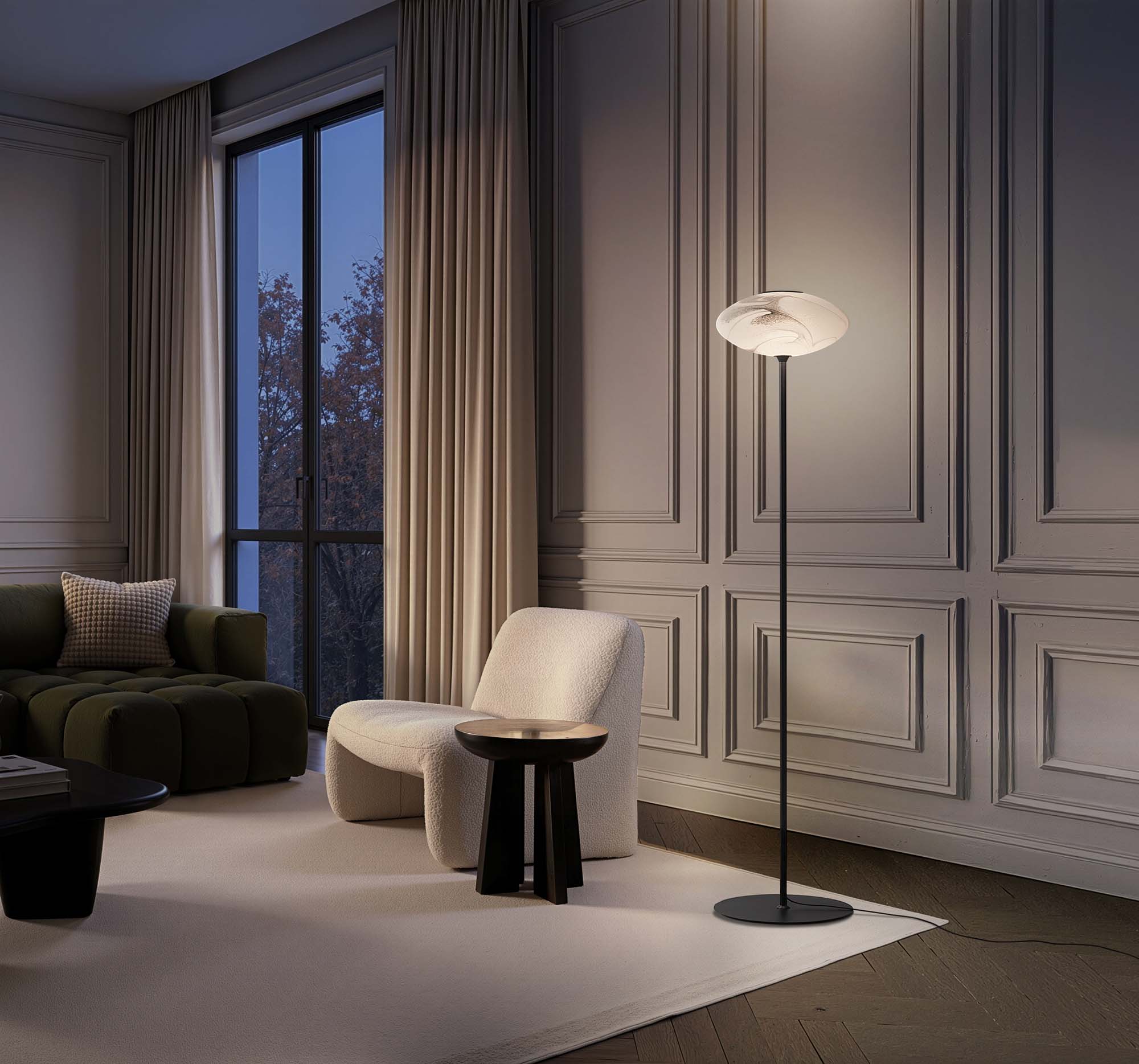 Astrelle Ellix Pt è una raffinata lampada da terra Made in Italy in vetro soffiato a bocca e lavorato a mano. Ogni soffio di fiato dei nostri mastri vetrai crea una sfumatura di bianco e nero irripetibile e unica, prova autentica della qualità artigianale che dà vita nostre creazioni.