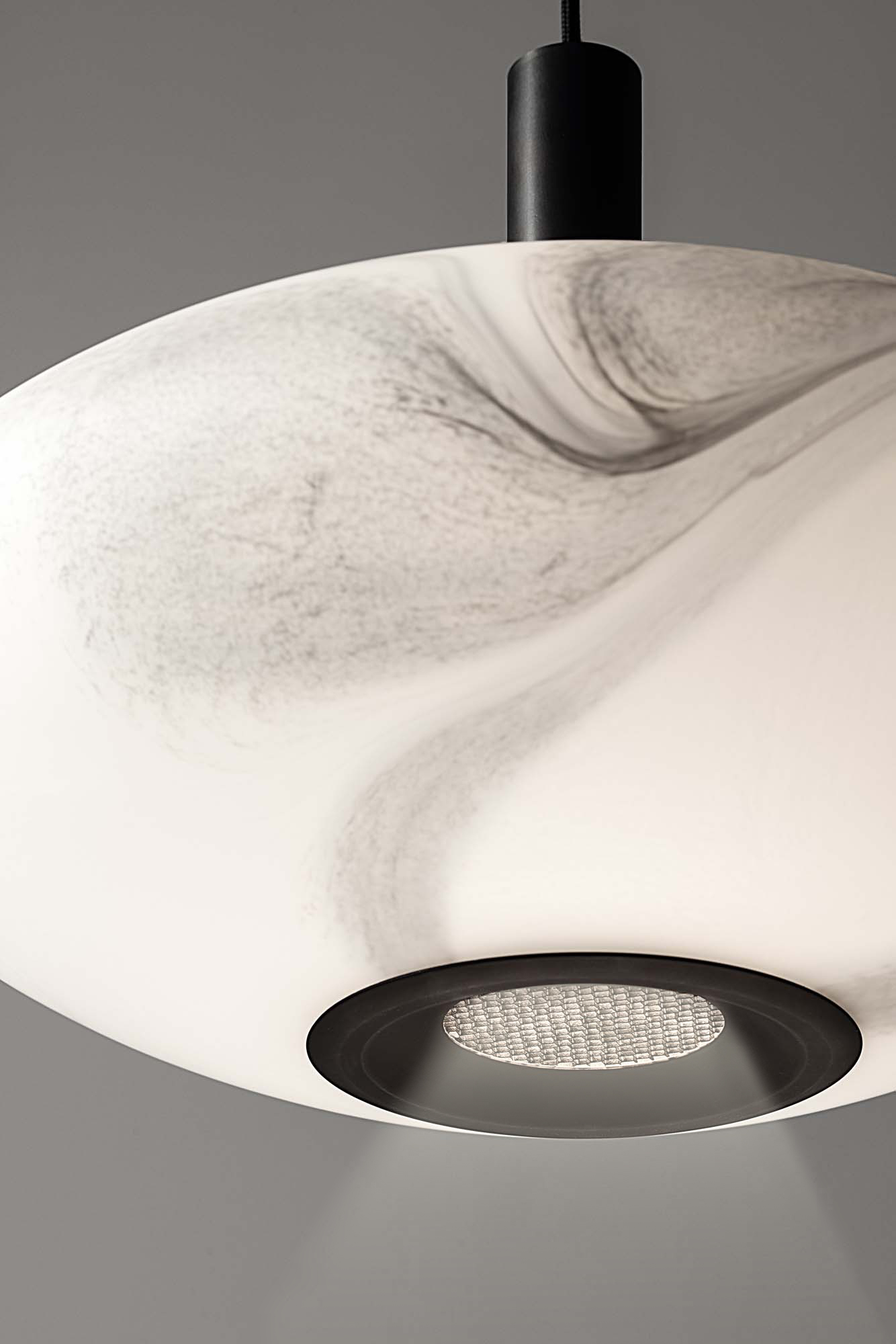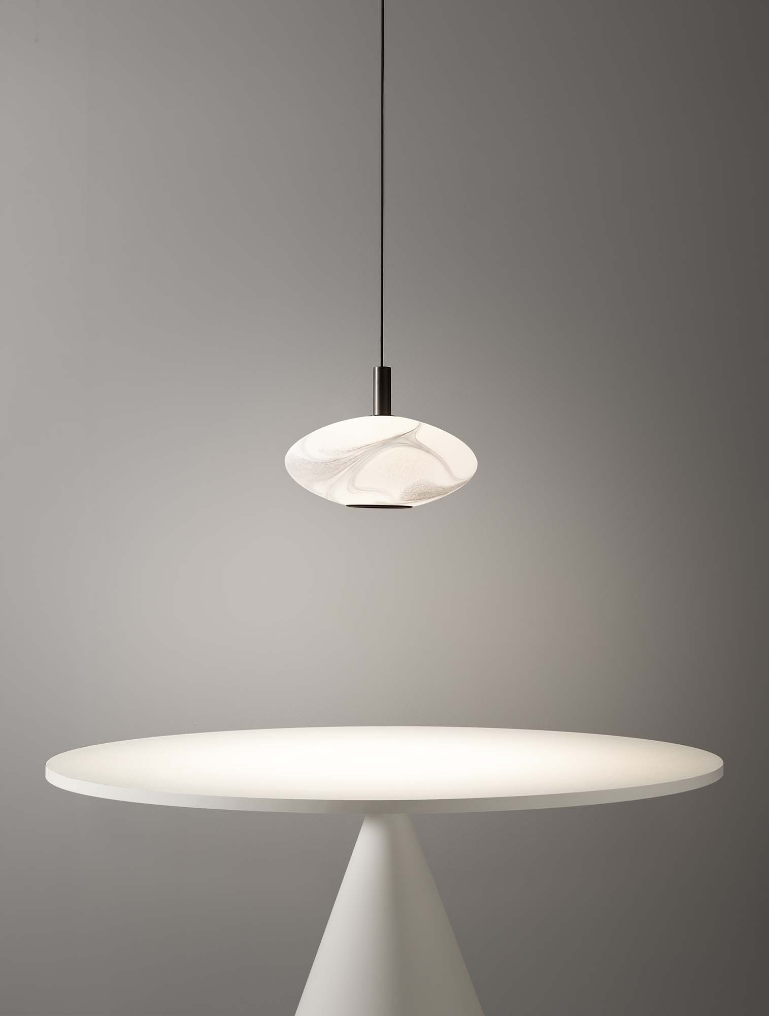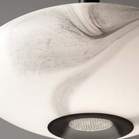 Astrelle Ellix è una raffinata lampada a sospensione Made in Italy in vetro soffiato a bocca e lavorato a mano. Ogni soffio di fiato dei nostri mastri vetrai crea una sfumatura di bianco e nero irripetibile e unica, prova autentica della qualità artigianale che dà vita nostre creazioni.