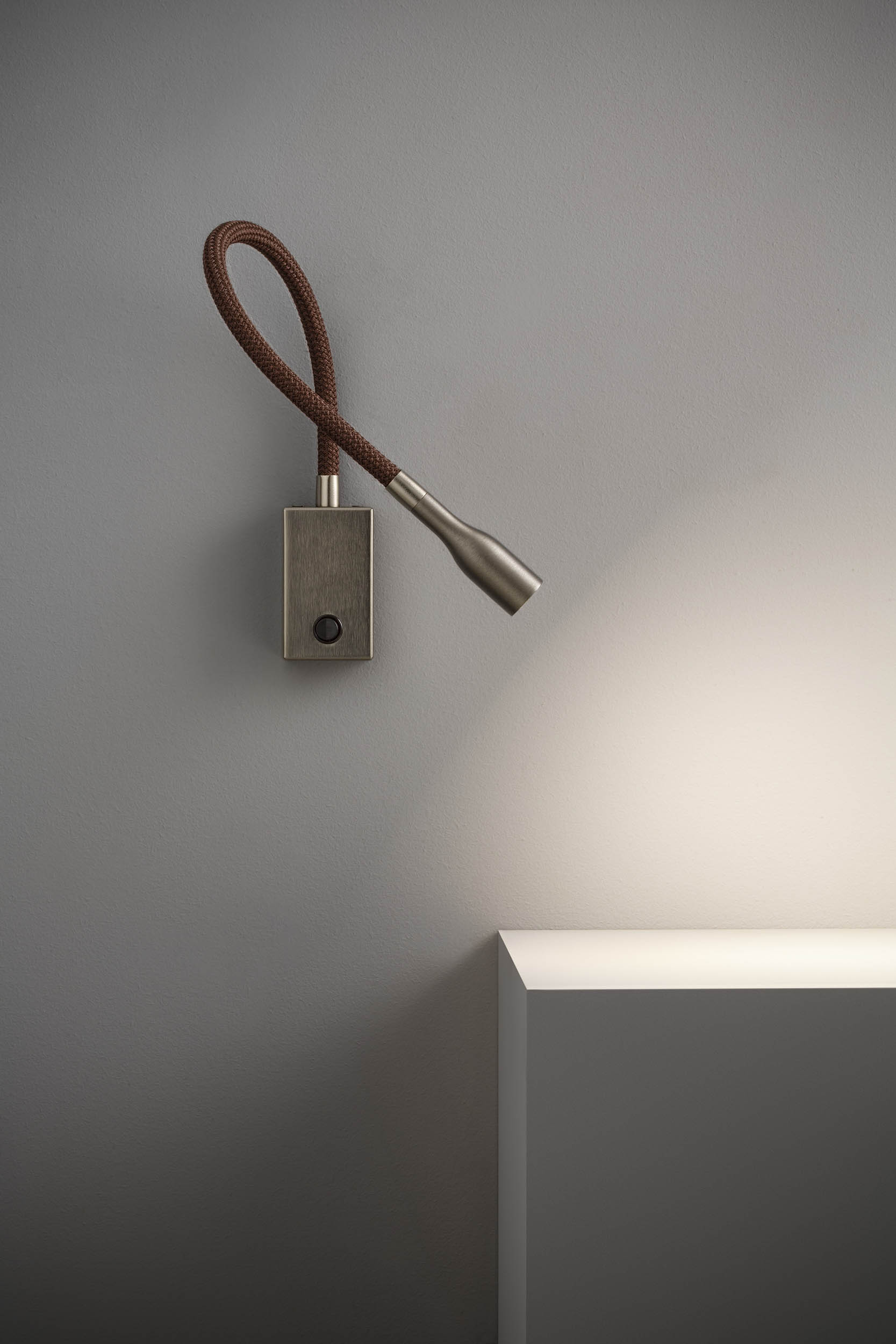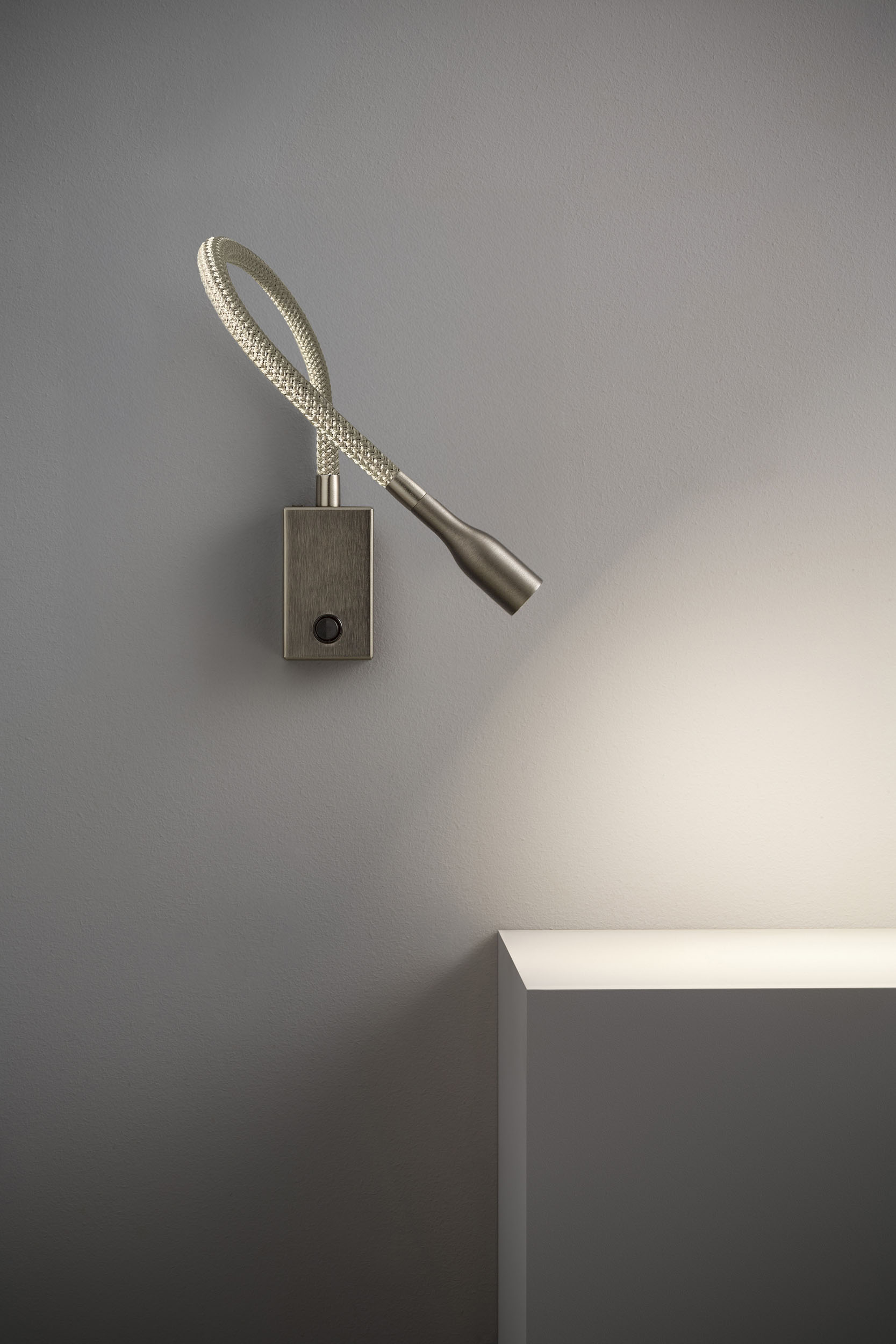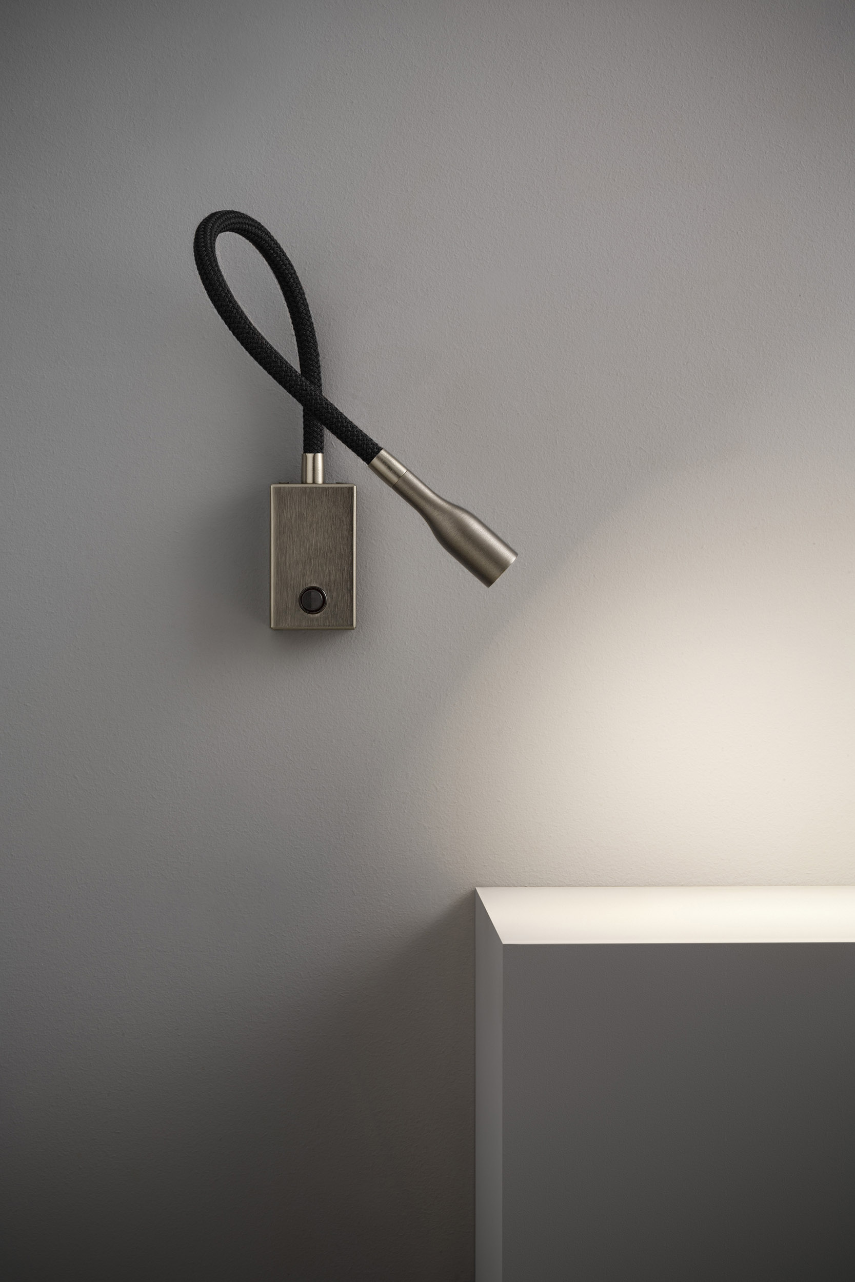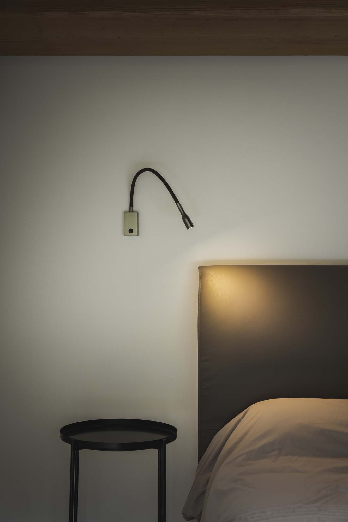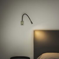 Olorflex è l’elegante lampada da parete flessibile a collo di cigno, ottima per la lettura serale.