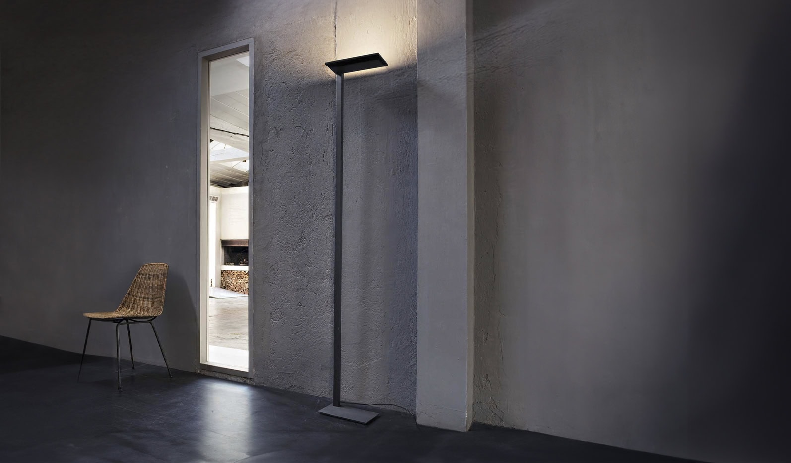 Piantana a LED da terra o da parete con luce indiretta verso l’alto.