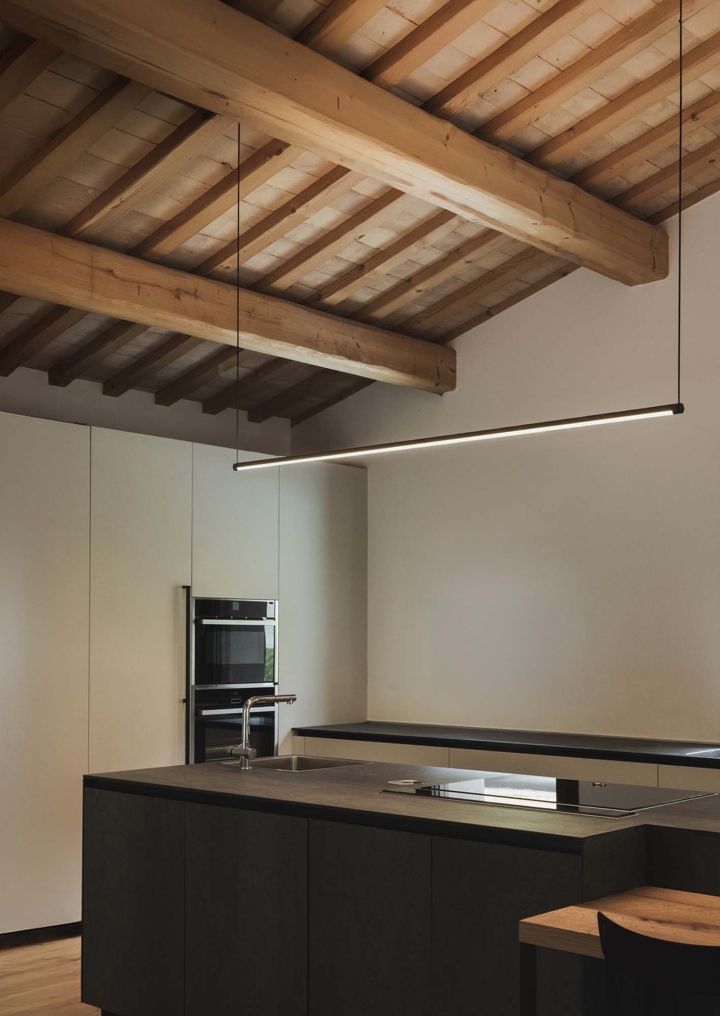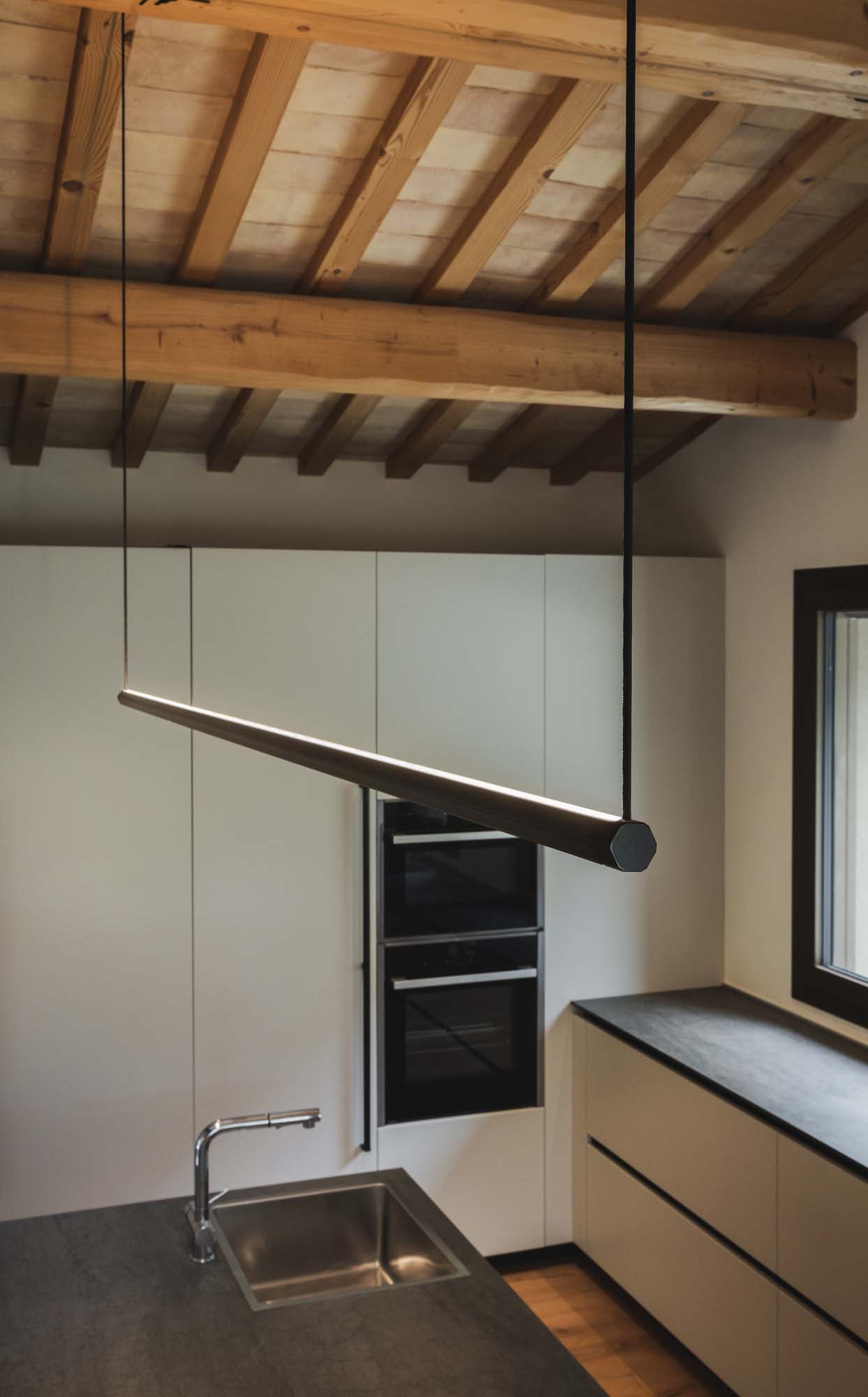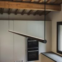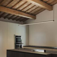 Sospensione a LED con profilo esagonale biemissione.