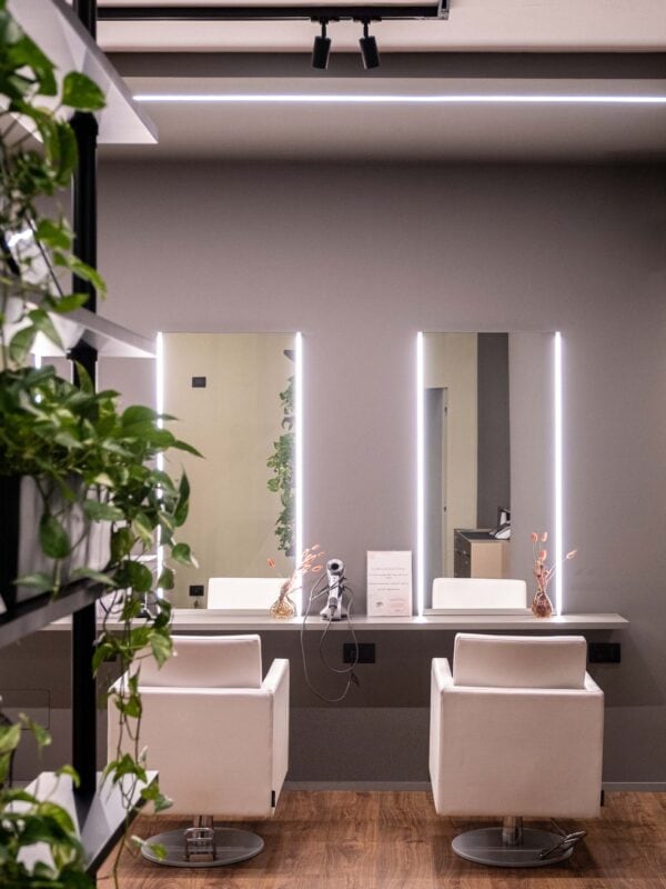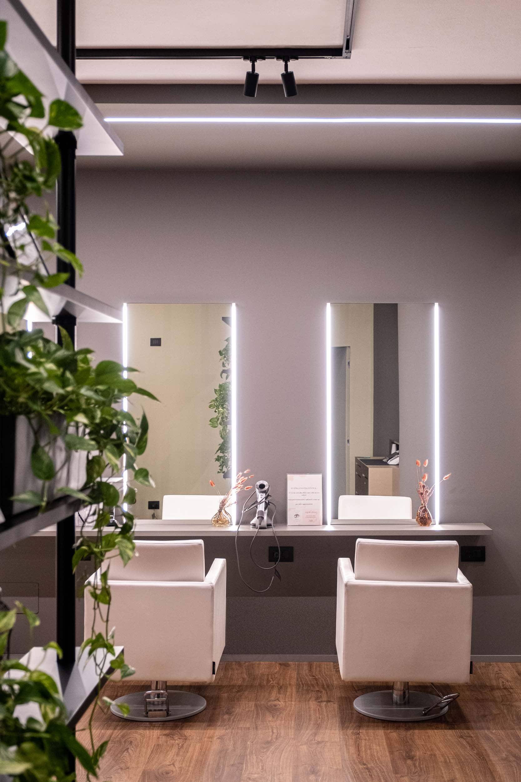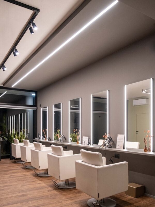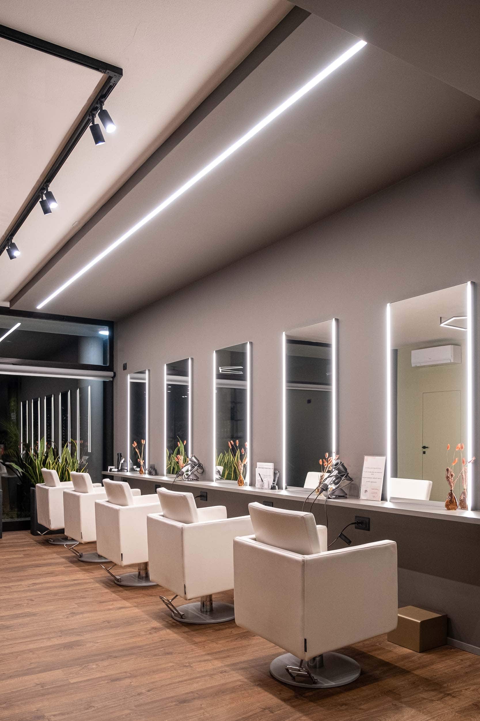 “L’alta qualità dell’illuminazione risalta colori e sfumature delle acconciature, mentre l’alternanza tra luci diffuse e luci puntuali ha consentito la realizzazione di un ambiente dinamico ma rilassante assicurando sempre un ottima visibilità all’operatore.